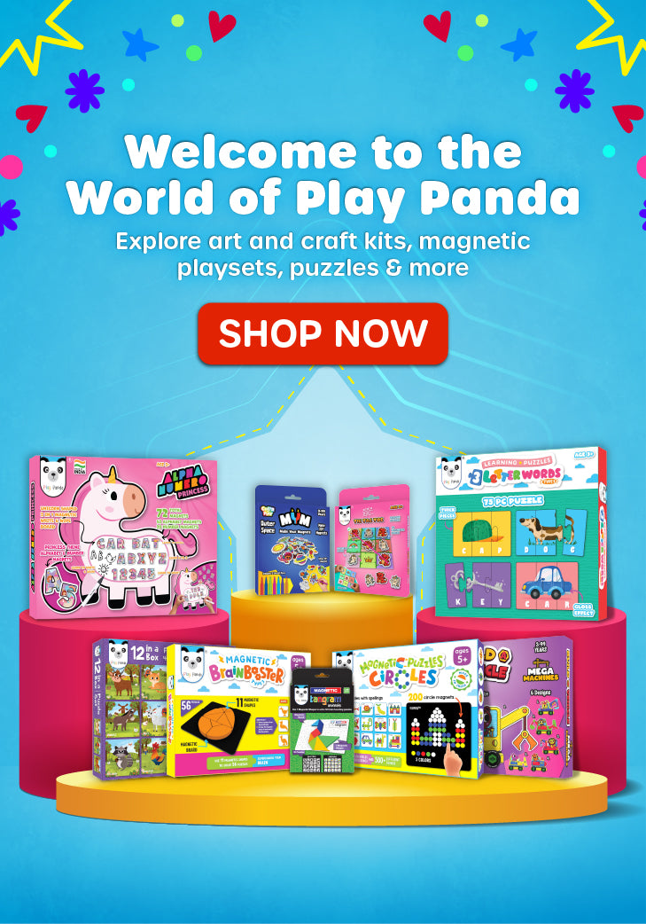 Play Panda Brain Booster Small Type 3 - 56 puzzles designed to boost intelligence - with Magnetic Shapes, Magnetic Board, Puzzle Book and Solution Book